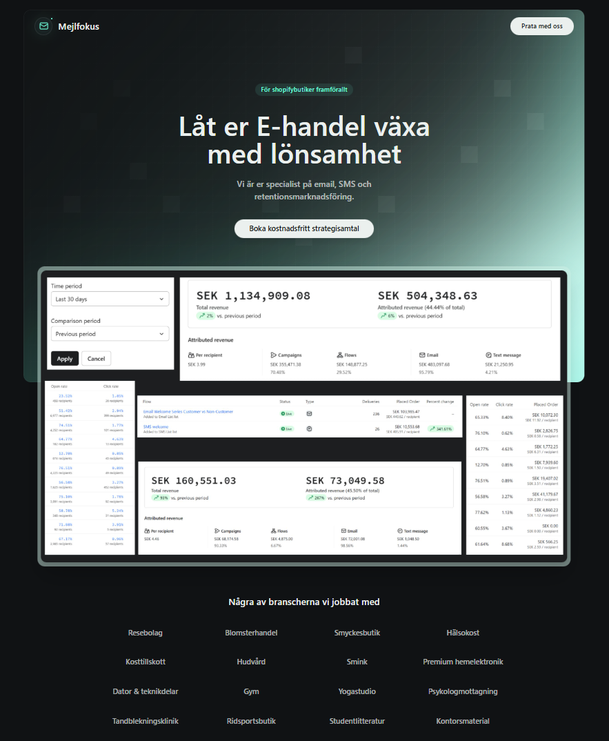 Vi bygger inte bara snygga hemsidor, vi optimerar dem för att maximera ert värde från alla era marknadsföringskanaler. Ert resultat är vårt fokus.